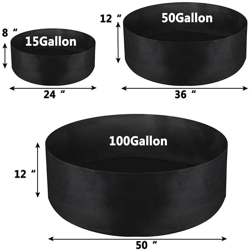 - 15 Gallon Round (diameter x height): 24 x 8 inch ( 60x20cm )