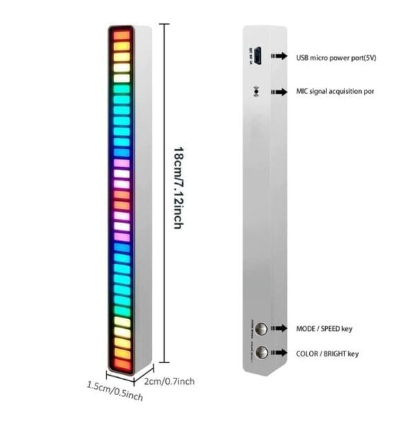 Sound sensitive music environment light bars have a 32-level adjustable pickup microphones, that easily sync with your music or ambient sounds emitted from your TV/PC.